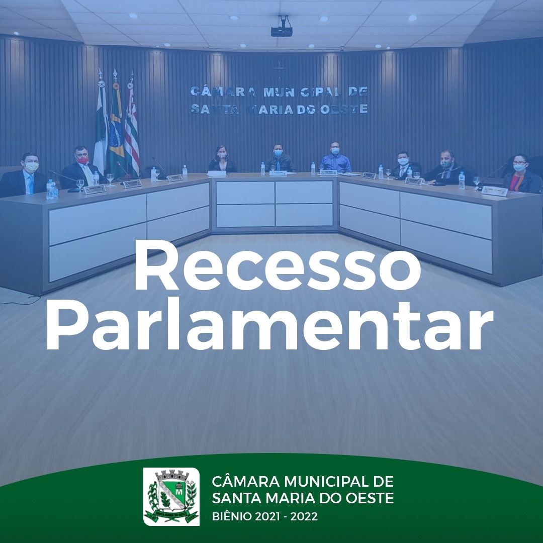 De acordo com o Art. 28 da Lei Orgânica do Município e o Art. 59 do Regimento Interno, a Câmara Municipal de Santa Maria do Oeste está em recesso parlamentar entre os dias 01 e 31 de julho. Porém, as atividades administrativas continuam a ser exercidas normalmente, bem como o atendimento ao público.